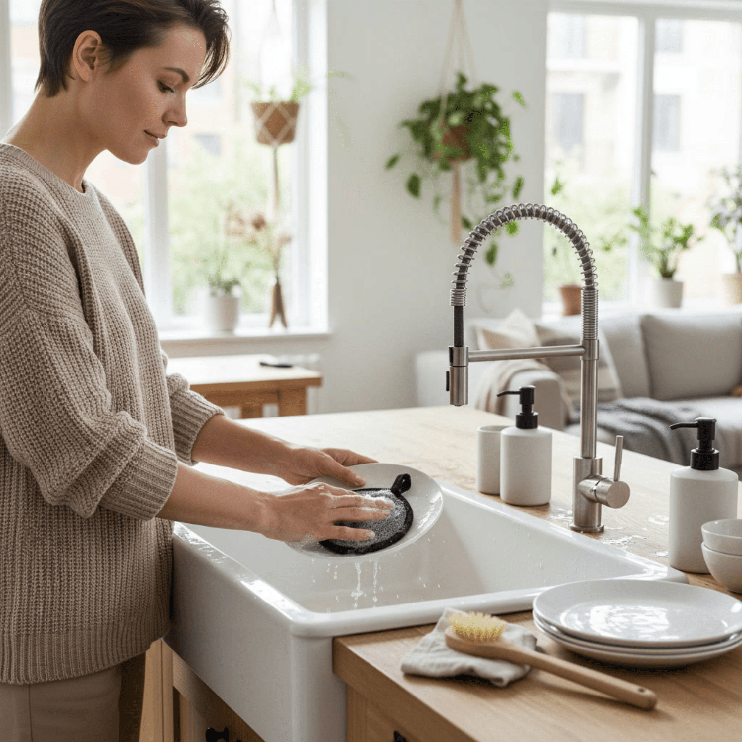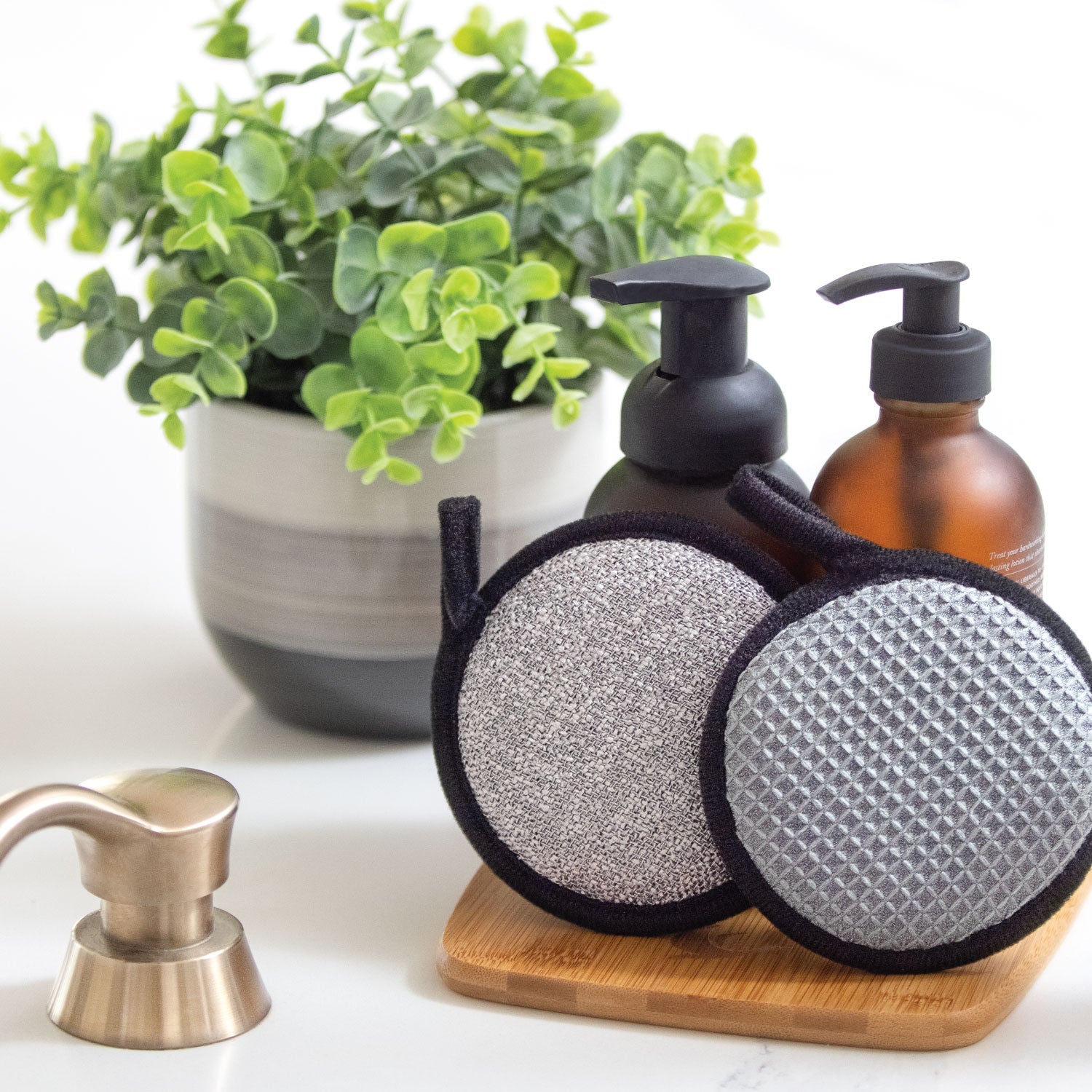 What is the best cleaning solution to use with my CARBON Tuff scrubbies?Nearly any type of cleaning spray is recommended! Please note that cleaning products containing bleach may damage or discolor the scrubbies.What is the best way to wash my CARBON Tuff Scrubbies?Washing in the washer is fine. However, we do not recommend fabric softener as it can leave a residue that leaves film when cleaning. The scrubbies come in a washing bag which is also recommended so the scouring surface does not cling to other items being washed. We highly recommend placing the scrubbies (for example on a counter on a cloth) out to dry for product longevity and best results.Â