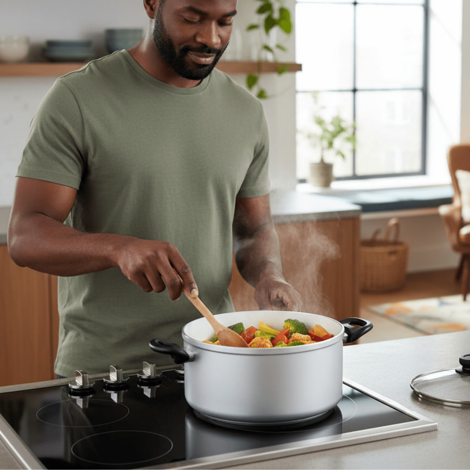 The Smart Living Ceramic Pot Set is suitable for use on the following heat sources, ceramic, induction, gas, and electric. Smart Living pots have a superior Swiss ILAG non-stick coating, making them excellent for delicate soups and sauces.