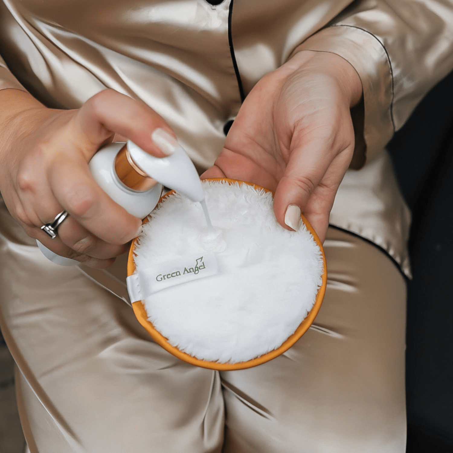 Remove makeup with a dry cotton pad or a damp Green Angel Cleansing Pad.