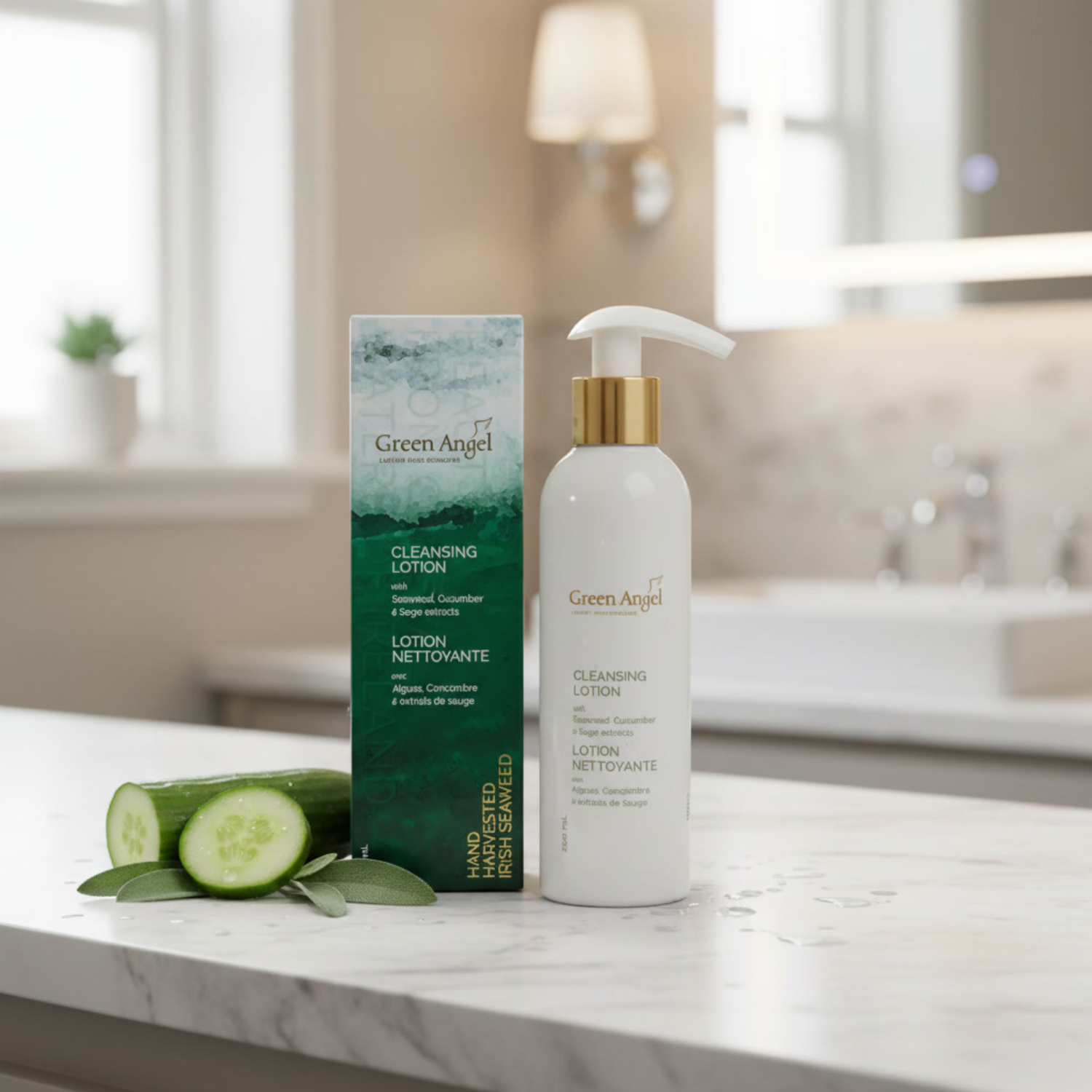 Green Angel Cleansing Lotion combines multi-vitamin and mineral-rich hand-harvested Irish seaweed with Cucumber and Sage extracts. This lotion offers a gentle cleanse for the skin, leaving it feeling refreshed and clean.
