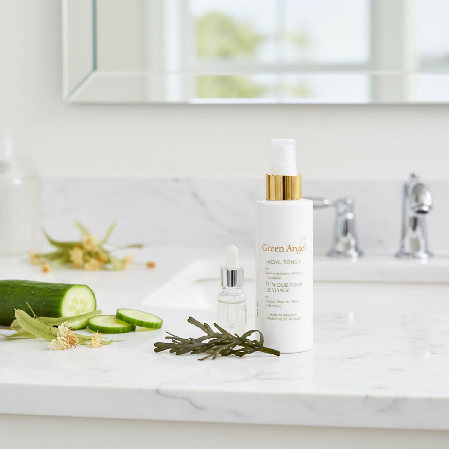 Green Angel Facial Toner is a natural-based skincare product that combines hand-harvested Irish seaweed with cucumber and Linden flower extracts. This toner is designed to tone and balance the skin, leaving it feeling refreshed and rejuvenated.